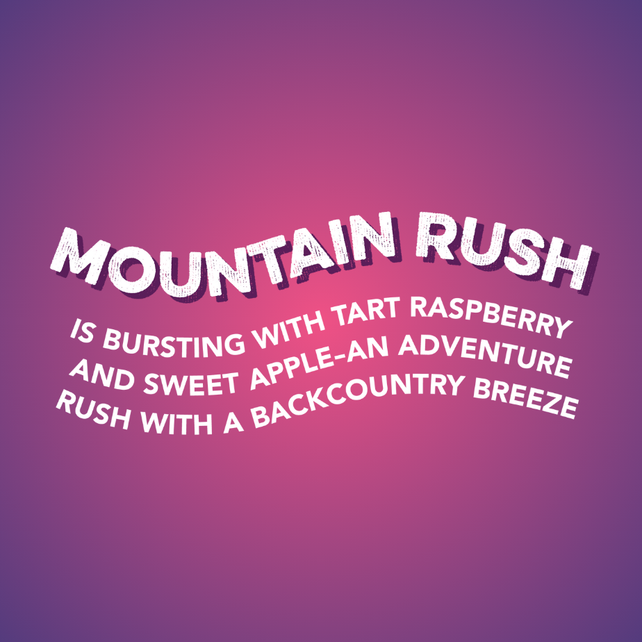 FLAVOR PROFILE: Mountain Rush is bursting with tart raspberry and sweet apple – an adventure rush with a backcountry breeze.