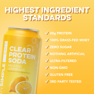 AMAZING BENEFITS: Clean Simple Eats Clear Protein Soda is brimming with 20 grams of grass-fed whey protein isolate with zero artificial ingredients. It’s ultra-filtered with low-lactose. making it gentle on digestion and easy-to-enjoy.